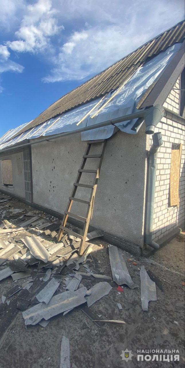 Поліцейські зафіксували пошкодження інфраструктури, приватних домоволодінь, господарських споруд, автомобіля. В будівлях побило дахи, стелі та стіни, вибило шибки, посікло огорожі навкруг.