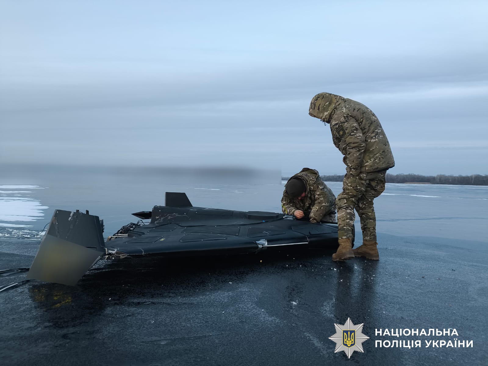 Ворожий дрон посеред замерзлої річки Дніпро: поліцейські знешкодили небезпечну знахідку