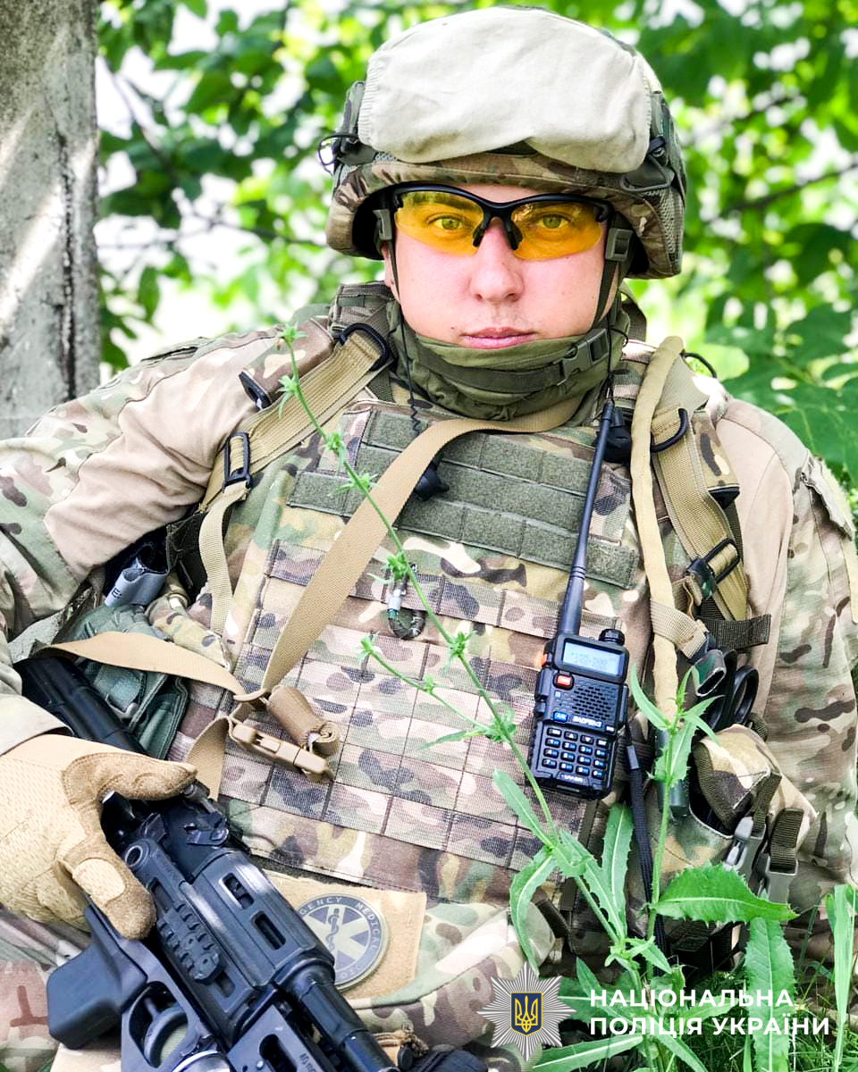 «Коли розпочалося повномасштабне вторгнення перейшов до роти поліції особливого призначення. Там пройшов курси бойового медика, після чого пів року був відряджений на передову у складі підрозділу «Захід». Ми брали участь у зачистках ворога на Лиманському напрямку», — пригадує поліцейський.