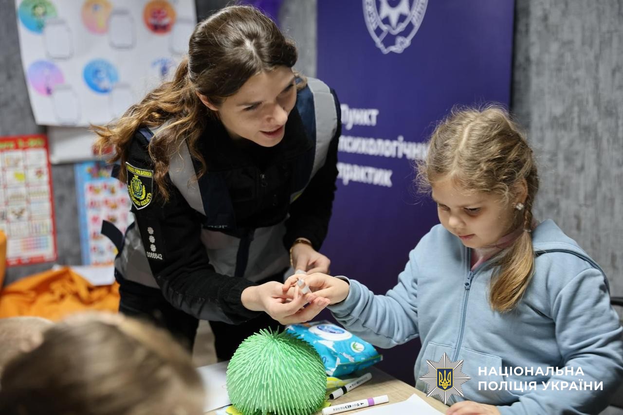 В освітньому центрі для дітей «Змістовно» психологині відділу психологічного забезпечення поліції Херсонщини провели арт-терапевтичний захід «Емоції в моєму житті» для дітей поліцейських, зокрема й тих, чиї батьки отримали поранення під час служби. Такі зустрічі покликані підтримати малечу, допомогти їм краще розуміти власні переживання та впоратися з емоційним напруженням, спричиненим воєнним станом.