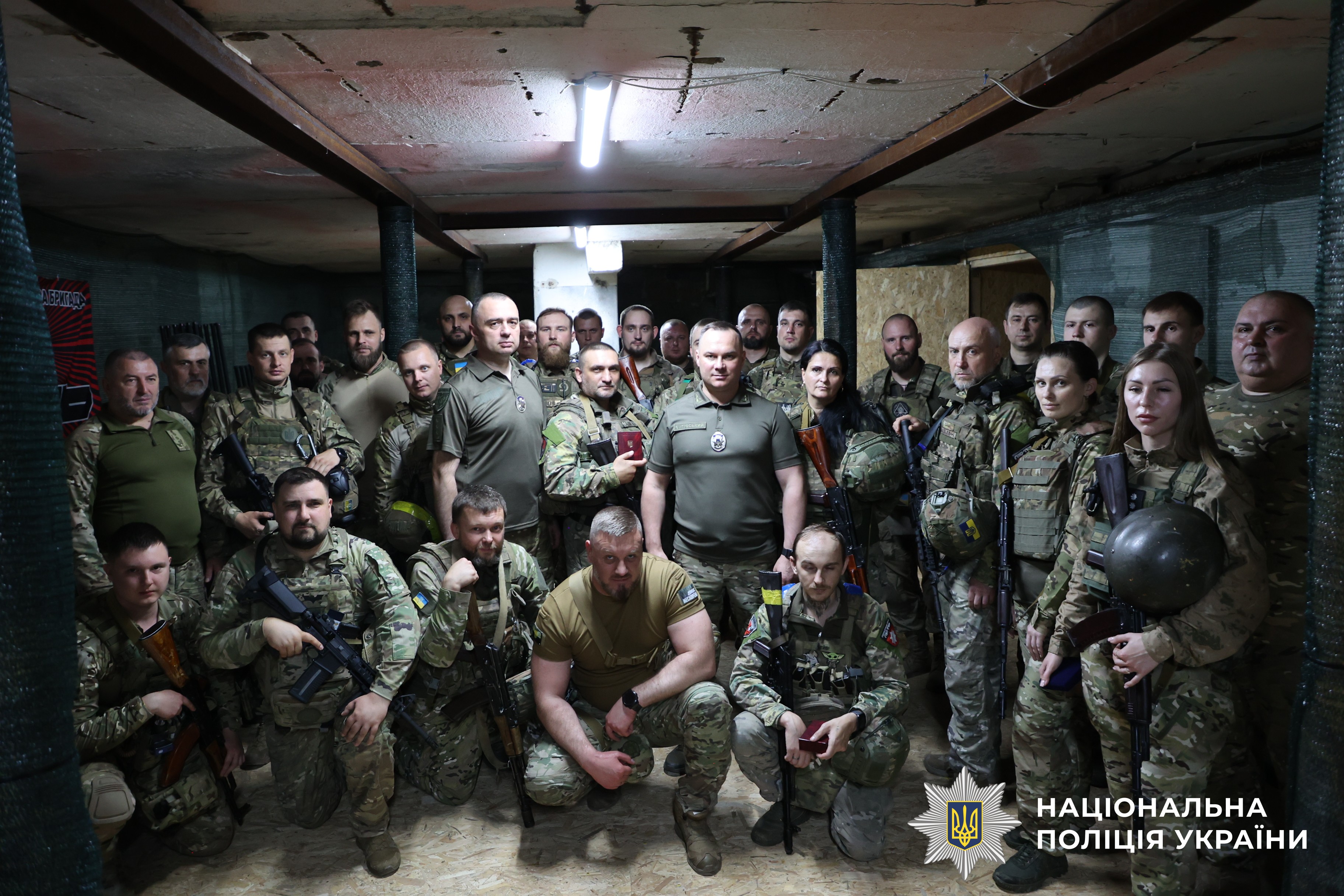 - Поліцейські Донеччини всі живуть у війні: щоденні обстріли, допомога і порятунок людей, евакуація, документування воєнних злочинів. Воїни бригади Нацполіції «Лють» тримають оборону на Часовому Яру, не даючи ворогу просуватись по нашій землі. На Донеччині лише один підрозділ поліції лишився в тій самій локації, яка була до повномасштабного вторгнення – всі інші пошкоджені або зруйновані. Ворог полює на самих поліцейських, наші автомобілі та відділи, саме через те, що поліція воює, поліція на фронті, і я щиро вдячний вам за самовіддану та важку роботу, яку ви робите щоденно, - наголосив Іван Вигівський.