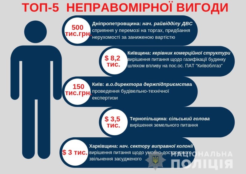 Суми за вирішення вищезазначених питань коливалися від 5 до 500 тисяч гривень.