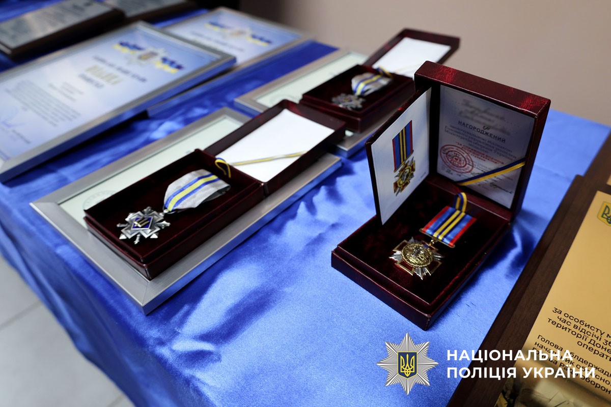 Відзнаки поліцейським вручили заступник Голови Національної поліції України-начальник кримінальної поліції Андрій Нєбитов, начальник Головного управління НПУ в Донецькій області Руслан Осипенко, начальник Донецької обласної військової адміністрації Вадим Філашкін, заступник командира зведеного підрозділу «КОРД» Олексій Гижко.
