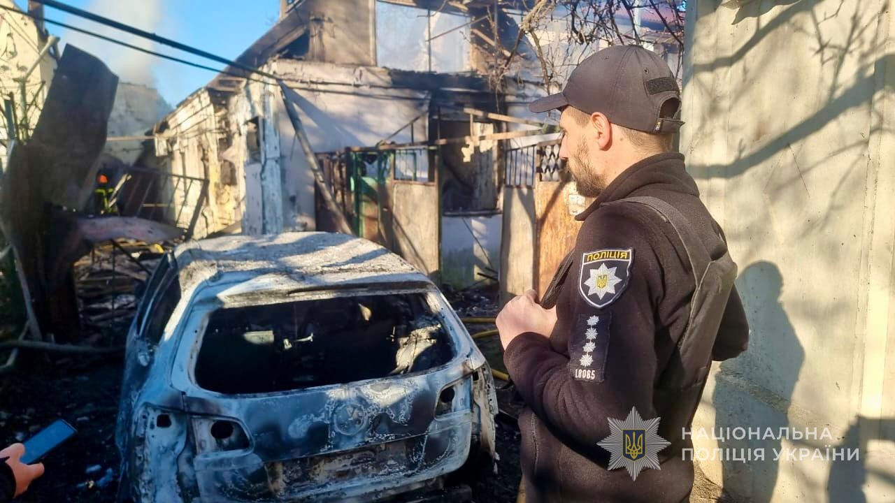 Поліцейські фіксують наслідки нічної атаки, збирають докази, опитують людей, надають психологічну допомогу та забезпечують правопорядок.