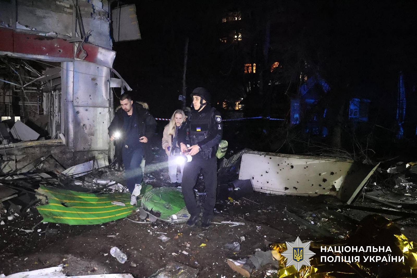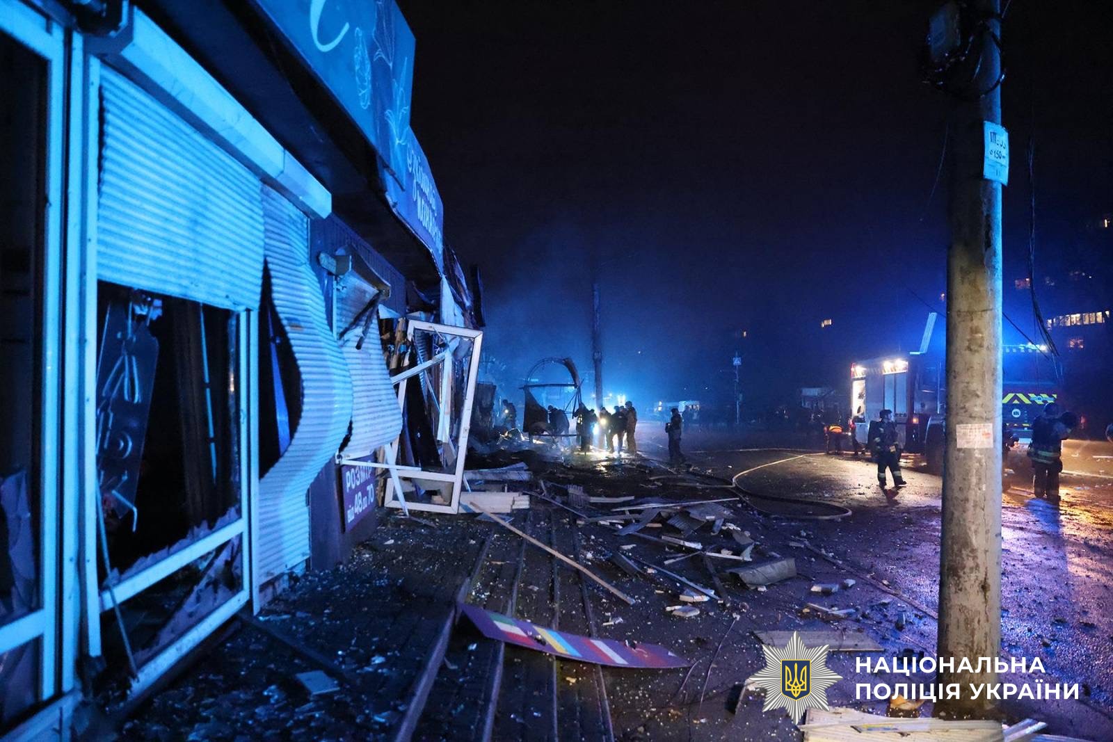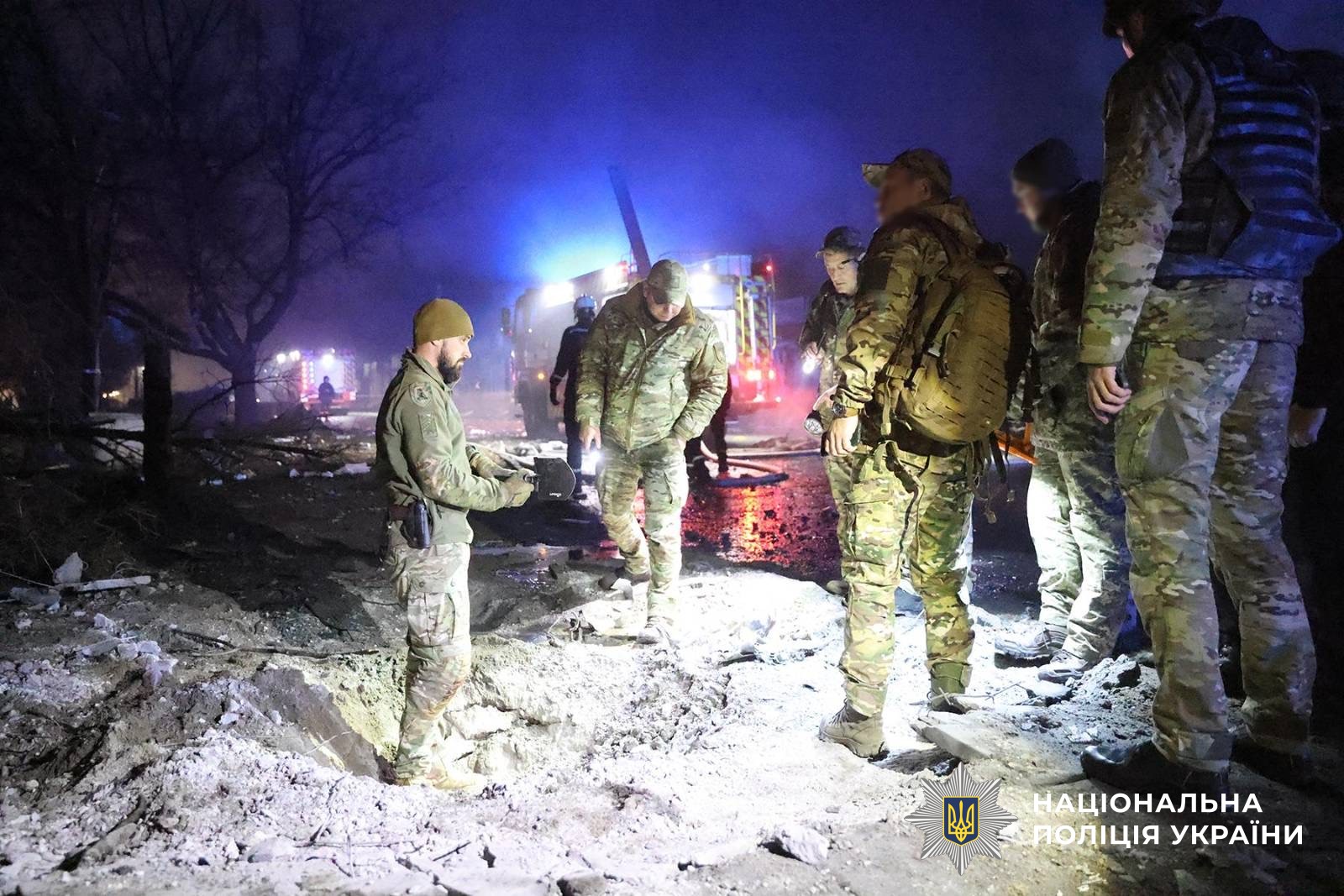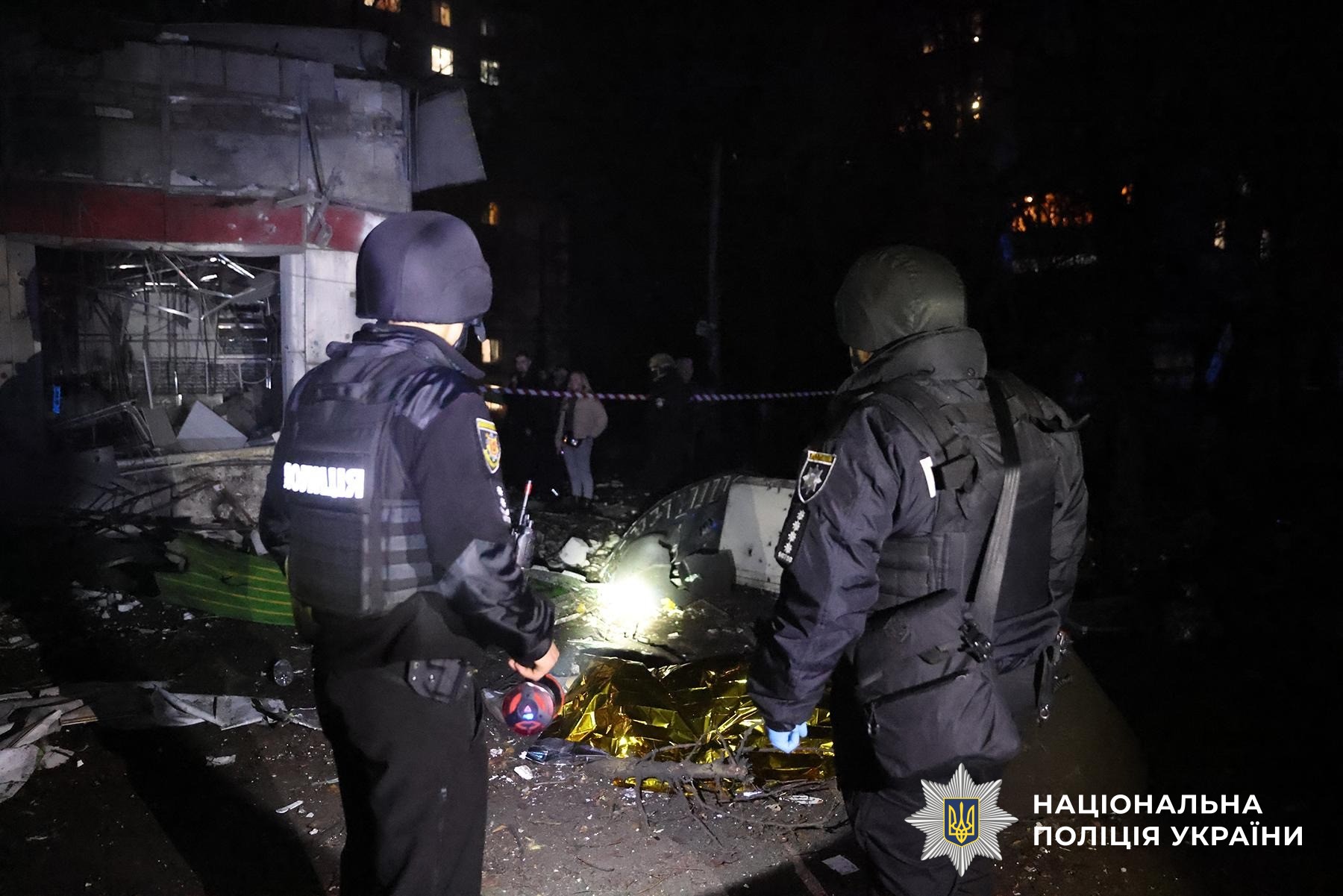 На місці влучання розгорнуто пункт прийому заяв та повідомлень про пошкодження майна та інші події, спричинені атакою.