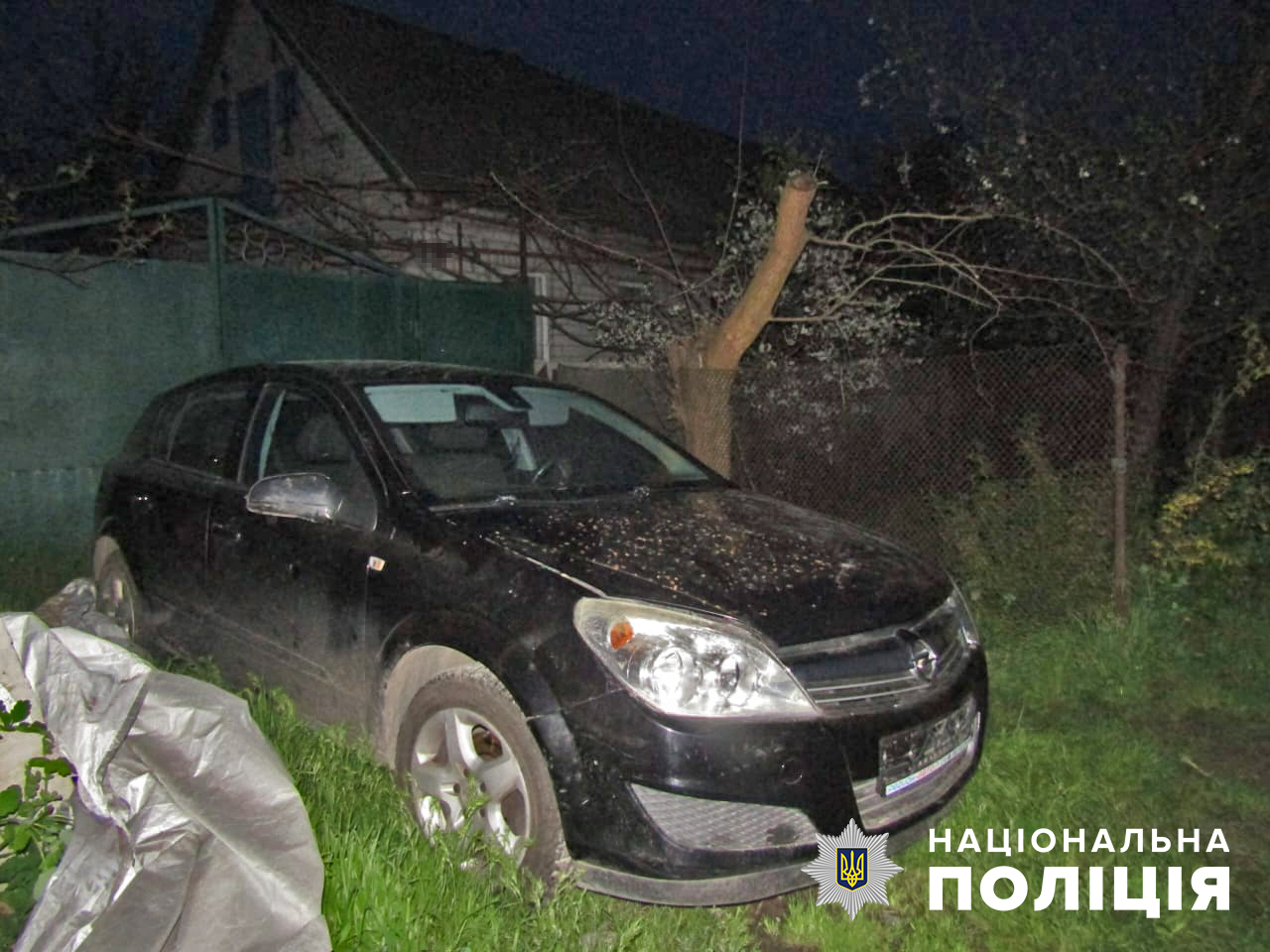Сам Opel Astra, замаскований брезентом та без номерних знаків, виявили перед домоволодінням одного з фігурантів працівники управління патрульної поліції.