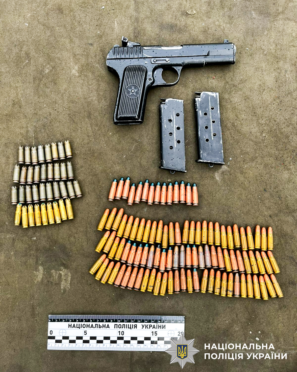Так, під час двох санкціонованих обшуків правоохоронці вилучили 3176 набоїв різного калібру, 11 бойових гранат, пістолет «ТТ» з двома спорядженими магазинами, а також техніку, чорнові записи, 72 тисячі гривень та 600 доларів.