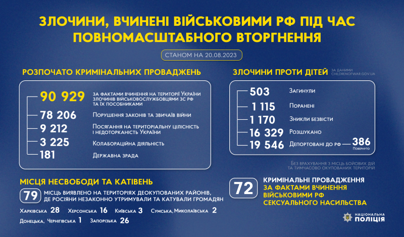 Злочини, вчинені військовими рф під час повномасштабного вторгнення в Україну (станом на 20.08.2023)